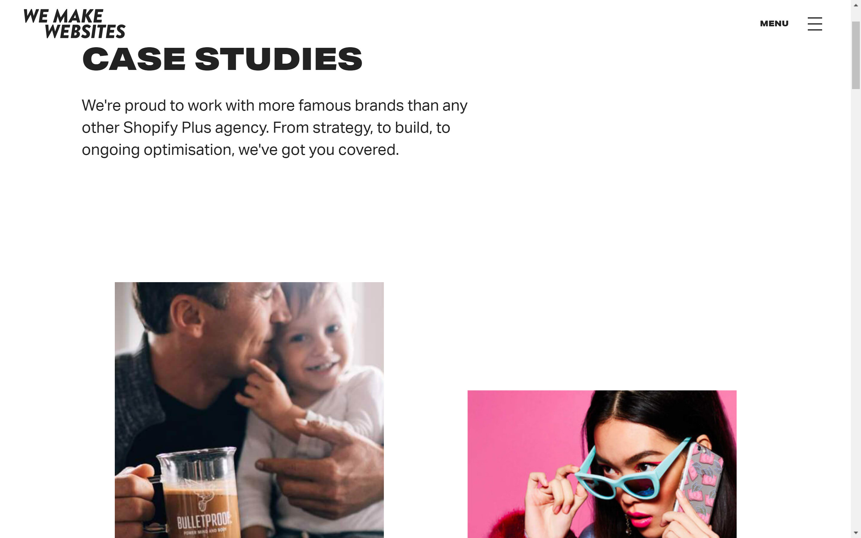 We Make Websites is a web design agency based in London and New York founded in 2009. They deliver best-practice, brand-enhancing e-commerce websites with an emphasis on working with Shopify Plus. Some of their clients are top companies in their field.