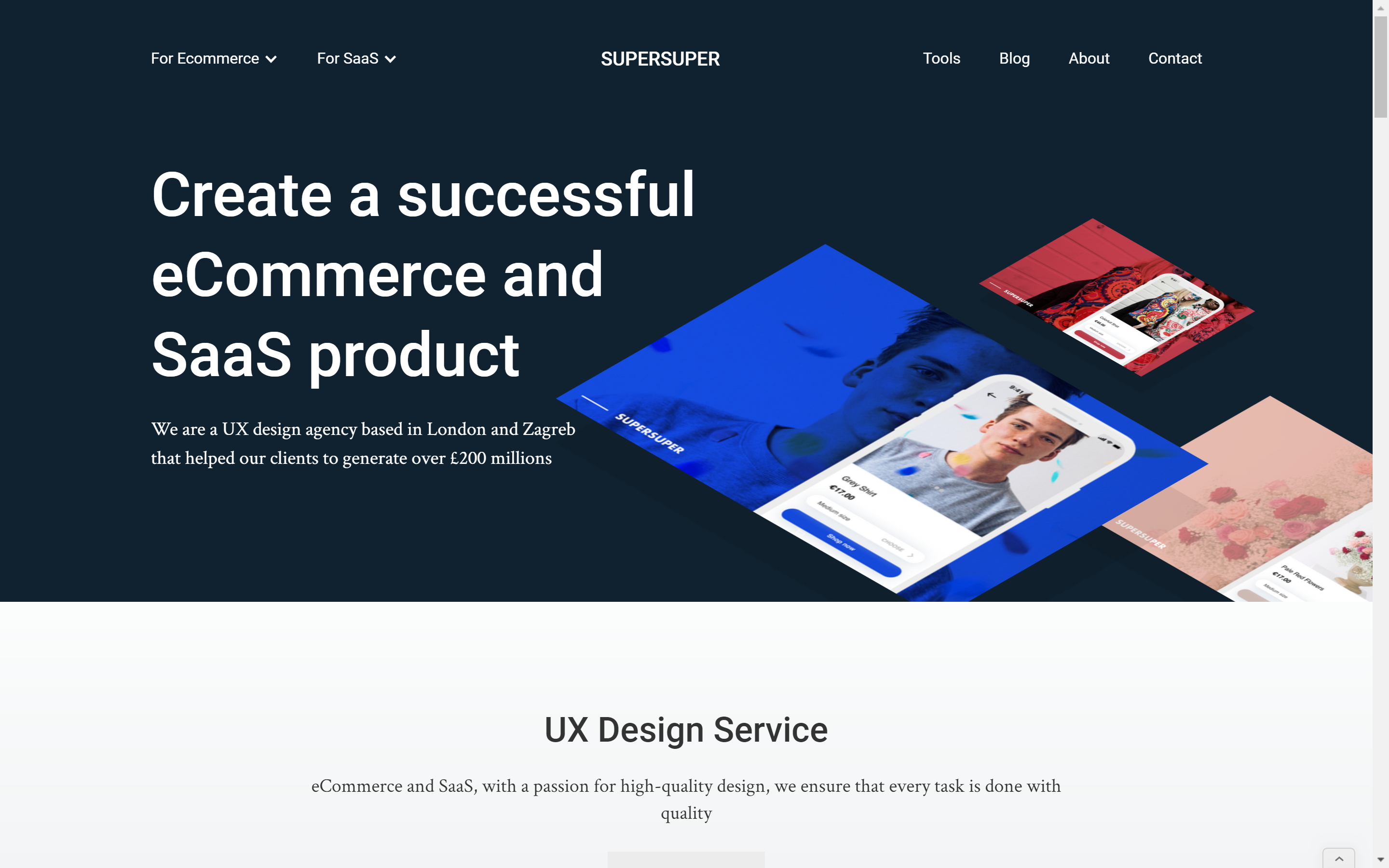 Webpage Tagline: "We are a UX design agency based in London and Zagreb that helped our clients to generate over £200 million."