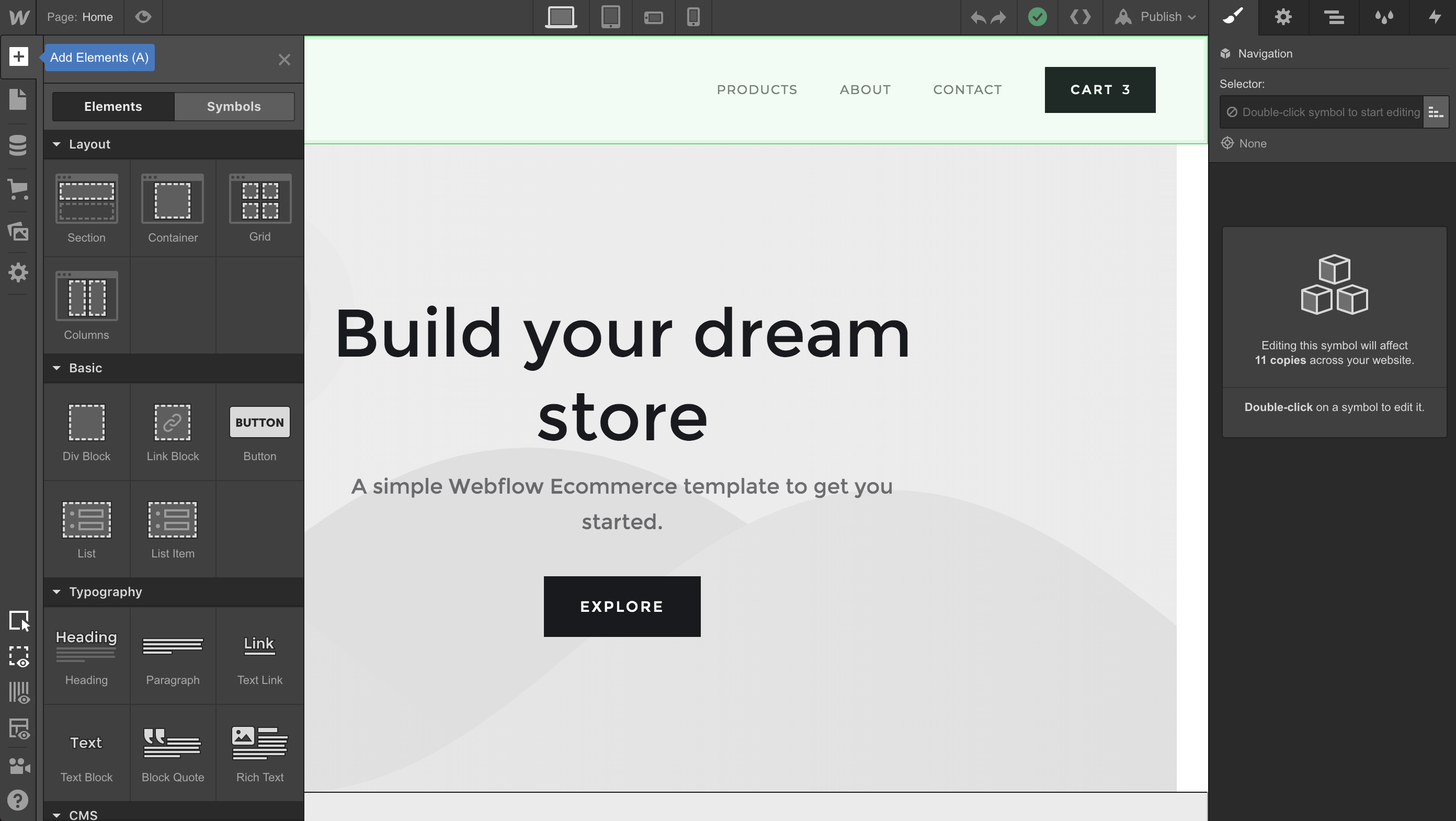 Webflow eCommerce is a new online business platform with a great visual editor which allows an unparalleled speed of design changes.