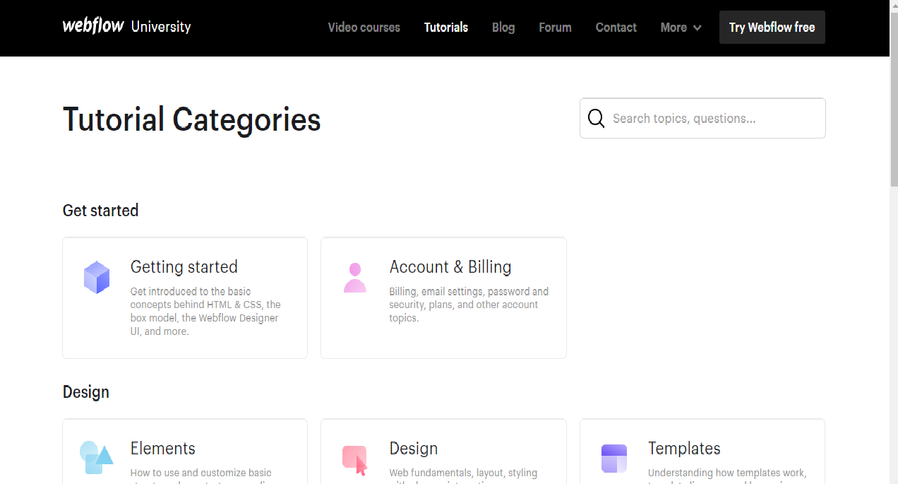 The interface is simple and intuitive. All most important features like adding a product, selecting a template, adding info, static pages, payment, and publishing are very easy to use. The interface is also very clean and modern and it has a great community and help section where everything is explained. Webflow also allows its users to edit HTML and CSS through a visual interface. There is no coding necessary.
