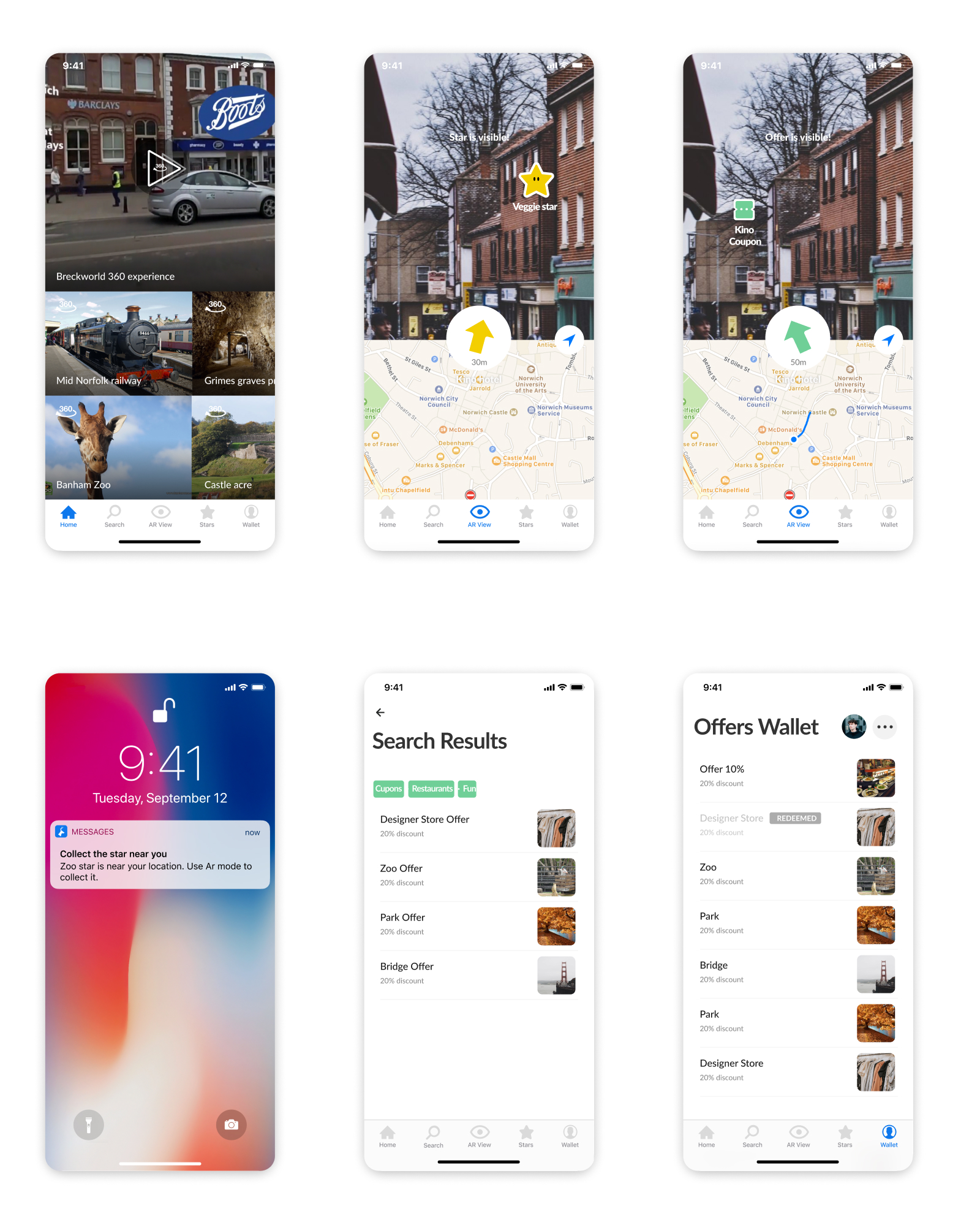 This iOS application combined augmented reality (AR), geolocation, and gamified search to help users discover coupon offers around them using real-world navigation. It showcased interactive maps, walking directions, and on-site rewards through AR experiences - aligning closely with emerging use cases in Maps and AR/VR.