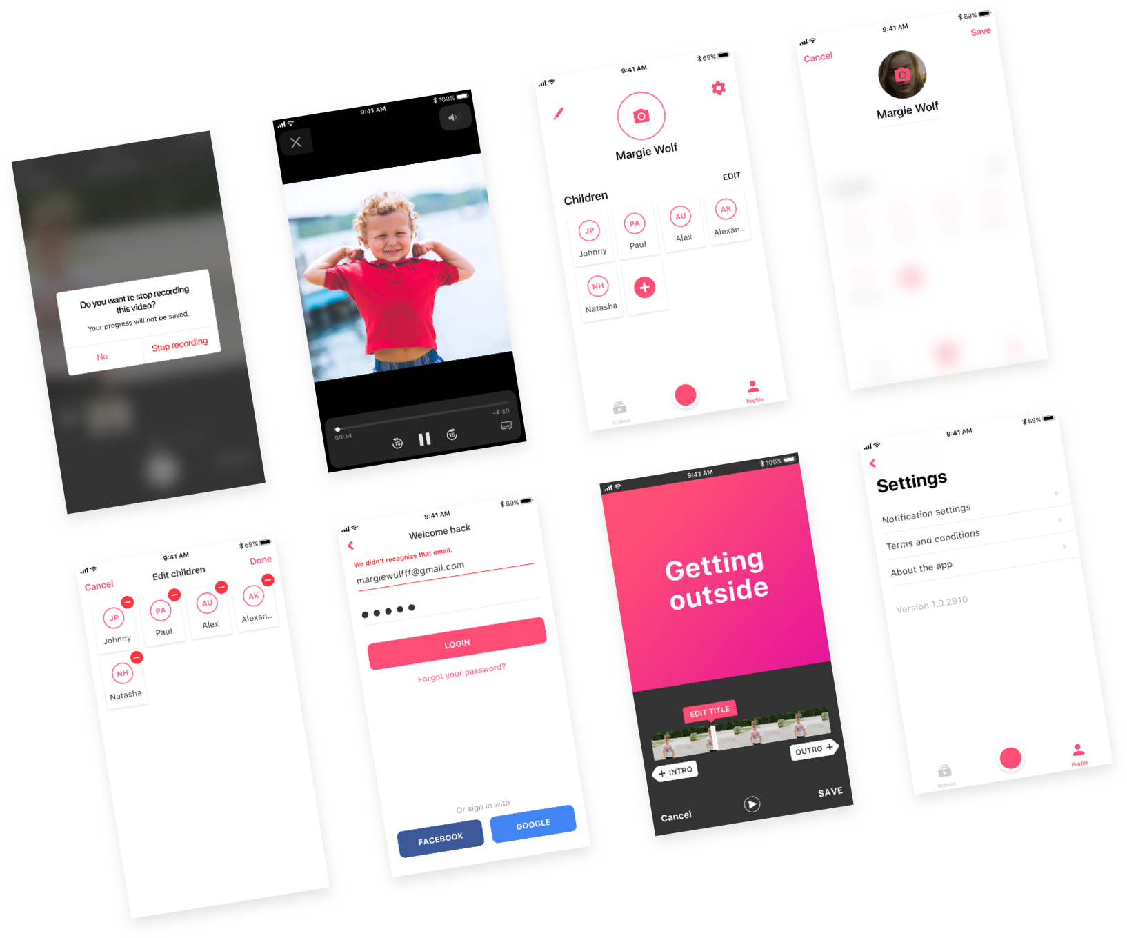 We also designed the rest of the app to the highest standard, including trimming the videos, profile, adding children to your group and more.